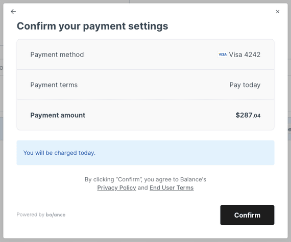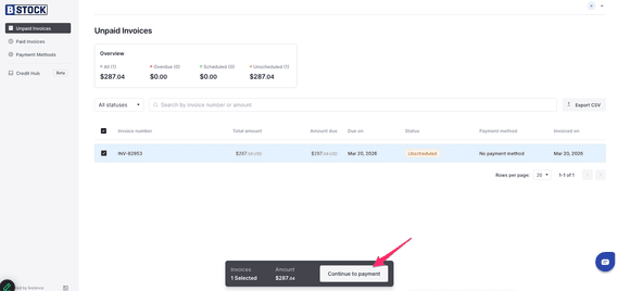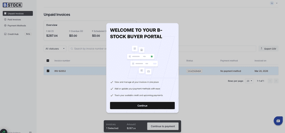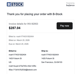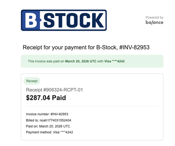 B-Stock has changed our invoicing partner for the B-Stock Fee processing. Once you win your first listing you will receive an email invoice from Balance, our new payments partner, that will allow you to add a credit card to your account.